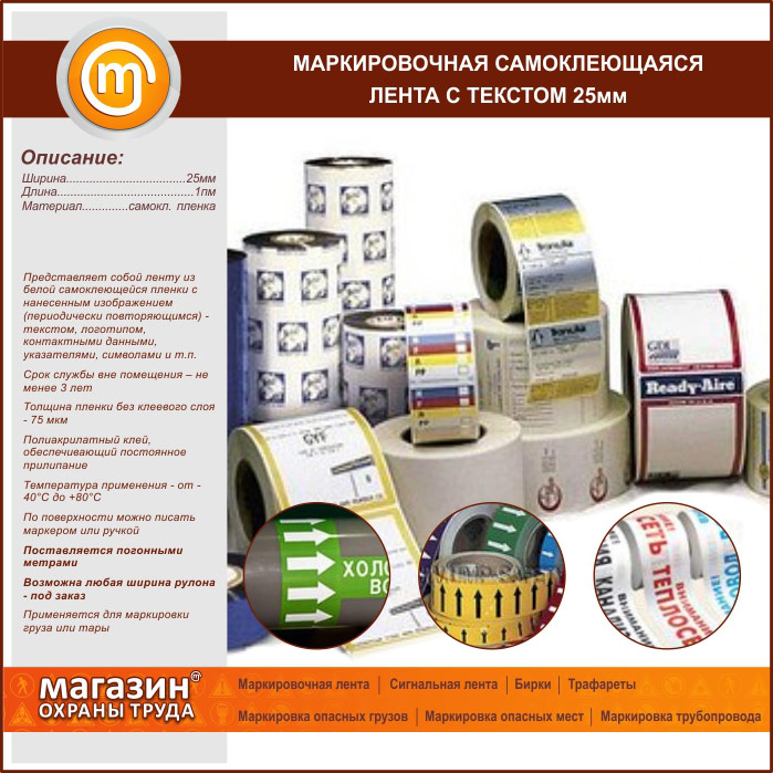 Маркировочная самоклеящаяся лента с текстом