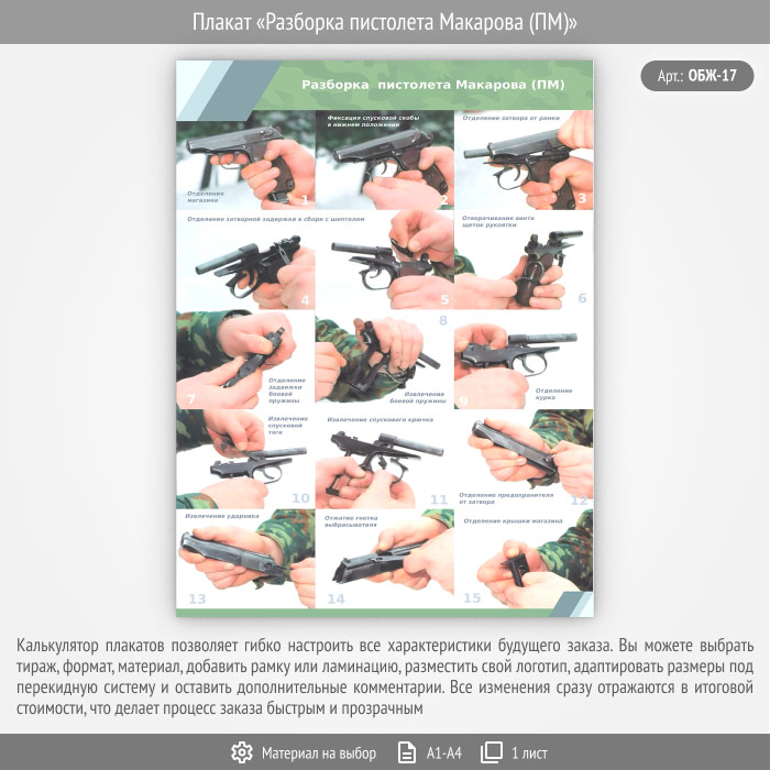 Плакат «Разборка пистолета Макарова (ПМ)» (ОБЖ-17, 1 лист)