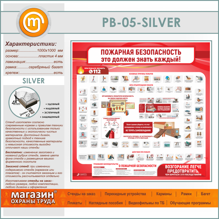Стенд «Пожарная безопасность. Это должен знать каждый» (PB-05-SILVER)